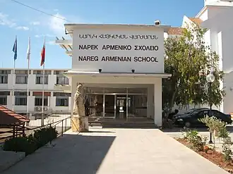 Το Αρμενικό Δημοτικό Σχολείο Ναρέκ κτίστηκε από την κυπριακή κυβέρνηση σε χώρο που δωρήθηκε από την Αρμενική Εκκλησία και εγκαινιάστηκε από την Αυτού Εξοχότητα τον Πρόεδρο της Κυπριακής Δημοκρατίας κ. Γλαύκο Κληρίδη στις 18 Μαΐου 1996 - Η ανέγερση του σχολείου έγινε με φροντίδα του Αντιπροσώπου της Αρμενικής Κοινότητας στη Βουλή κ. Αράμ Καλαϊτζιάν (The Nareg Armenian Elementary School was built by the government of Cyprus on a ground donated by the Armenian Church and was inaugurated by His Excellency the President of the Republic of Cyprus Mr Glafcos Clerides on 18 May 1996 - The construction of the school was made with the care of the Representative of the Armenian Community in the House Mr Aram Kalaydjian)
