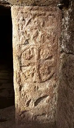 The Armenian basilicas of the early period (5th–6th centuries) were characterized by symbolic images: crosses with the arms of equal length in a circle complemented by floral and geometrical motifs symbolizing eternal life. Crosses were often raised on a short pole or stepped base as the symbol of Golgotha.[3]
