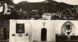 Of great importance is Saint Makarios’ [Սուրբ Մակար (Sourp Magar)] monastery [Մակարավանք (Magaravank), also known as Αρμενομονάστηρο (Greek), Ermeni Manastırı (Turkish) and Armenian Monastery (English)], located within Plataniotissa forest near Turkish-occupied Halevga, on the Pentadhaktylos mountain range - at a height of 530 m. Its vast land (about 8.500 donums), extending up to the coast, included around 30.000 olive and carob trees, whose exploitation was the main source of income for the Armenian Prelature of Cyprus until 1974. The monastery was originally established by Copts circa 1000 AD on a location at which Saint Macarius is said to have been an ascetic; his icon was believed to be miraculous and, until the early 20th century, the Armenian residents of the region - some of whom had found shelter after the Hamidian massacres (1894-1896) - believed they could hear the Saint galloping with his horse at night.