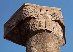 A rather extensive literature is devoted to attempts to establish the Armenian origin of various Byzantine emperors. According to the Armenian historian Leo, this "flattered the national vanity of Armenians".[29] The first Byzantine emperor about whom there is a legend regarding his Armenian origin is Maurice (r. 582–602). A number of Armenian historians of the 10th–13th centuries provide information about his Armenian origin, from Oshakan, according to Asoghik.[30] In the same locality, there is a column, according to local legend, erected in honor of the emperor's mother.[31] The analysis of these legends was conducted by N. Adontz, who supported recognizing their authenticity. Nevertheless, the majority of modern researchers recognise the perspective of Evagrius Scholasticus, who asserts that Maurice "by descent and name, originated from ancient Rome, and by his immediate ancestors, his homeland was the Cappadocian city of Aravin".[32][33] According to the authors of the Oxford Dictionary of Byzantium, this question remains unsolved.[34]