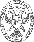 Coats of arms of the Angeli Flavii Comneni (1551–1905) The Angeli Flavii Comneni, also known as Angeli or Angelori, were a prominent Albanian noble family, mentioned by Georgii Merula in his Bellum Scodrense ad Iacobum Merulam et Franciscum Gambarinum (Venice, 1474) alongside the Radovani, in the context of the Albanian wars.[76] The family traced its lineage to Andrea, voivode of Drivasto, who claimed descent from Byzantine royalty. Andrea was the father of Pauli, Archbishop of Durazzo. He was closely related to several leading Albanian noble houses, mainly the Dukagjini, Spani, Cernovichi and Dusmani. According to Sansovino, Count Andrea defeated the famed Albanian warrior Georgio Castriota in 1448.[77] Another of Andrea’s sons, Pietro, served with distinction as a captain under the Venetian banner. His line produced a later Pauli, who became Count of Drivasto and Lord of Antivari. Pauli had three sons: Angelo, whose son Giovanni was the father of Count Andrea Angeli Radovani, consul in Toscana;[78] Andrea, known as “Chiorri” who founded a branch of the family at the Bay of Cattaro; Pietro, who became imperial consul of Scutari in 1696. Pauli’s brother, Pietro, persecuted by the Ottoman authorities was responsible for the downfall of the Angelori branch in Scutari. Nicolò, son of Angelo and brother of Giovanni, served as Archbishop of Sofia and later of Durazzo until 1752.[79] His cousin, Basilio Angeli Radovani, acted as his vicar general. Georgio Angeli Radovani was appointed Bishop of Scutari in 1771. A genealogical tree of the family was compiled in 1785 by Vincenzo Alessandro Costanzi, archivist of the Sacred Congregation for the Propagation of the Faith. It begins with Ghiécci Angelori (Georgio Angeli) in 1565 and traces the lineage to Andrea, who at the time resided in Ancona, while other branches remained in Scutari. The family’s coat of arms features a standing angel holding a palm branch, supported by a double-headed eagle and topped with a comital crown. The Angeli of Napoli and the Craveggia also descend from this line of the Angeli dynasty.