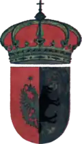 Coat of arms of the Spani (1884) The Spani were a noble Albanian family that emerged during the 14th century. Originating from Drivasto, they were involved in trade and gradually became major landowners.[86] The family settled in Curzola, where it was listed in the official register of nobility as early as 1553, although it had not yet obtained imperial recognition. In 1680, Jacobus Spani studied in Padua under Hechte and Hess and displayed his coat of arms in the university hall.[87] Nicolaus served as bishop in the island of Curzola from 1673 until 1707.[88] Of possible Spanish lineage, as their name would suggest, a brief profile of their family origin is given in Du Cange's "Illyricvm Vetvs & Novum Sive Historia":[89]