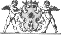 The legend of the Sacred Military Constantinian Order of Saint George arose in the latter half of 16th century Venice with this very family, whose descendants would for decades successfully exploit their "Byzantine myth", publishing fantastic literature on the history of the Order, awarding European aristocrats and granting them diplomas for priories and commanders in Cilicia, Cappadocia, Hierapolis and other exotic lands in exchange for monetary compensation.[82] A later rendition of the coat of arms attributed to their namesake is in fact associated with the noble Querini family, as depicted in the 1671 work by Jacopo Zabarella, titled "Il Galba, overo Historia della sereniss. fameglia Quirina..."[83] |