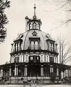 The Armour–Stiner House is an octagon-shaped and domed Victorian-style house located at 45 West Clinton Avenue in Irvington, in Westchester County, New York. It was designated a National Historic Landmark in 1976.[1][3] It is the only known fully domed octagonal residence. The house was modeled after Donato Bramante’s 1502 Tempietto in Rome, which in turn was based on a Tholos, a type of ancient classical temple.