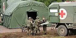 The Army Medical Service has been a separate branch within the military since the German Empire. The first Army Medical Service was established in Prussia and Germany between 1868 and 1873, and was regulated by the Kriegssanitätsordnung für das deutsche Heer from 1878.[3] Following German rearmament in the 1950s, the medical service was reestablished based on the traditional structure, with a medical service for each military branch.[4] This changed in 2002, when the medical services were largely merged to form the Joint Medical Service, although the Army Medical Service still exists as a much smaller organisation.[5]
