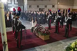 The government declared a day of mourning on July 10 and between 8 and 10 July, Flags were at half mast. The government also announced a state funeral that took place on 10 July in Rome's Santi Pietro e Paolo a Via Ostiense basilica.[39][40][41]