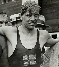 Claes Arne Borg (18 August 1901 – 7 November 1987) was a Swedish swimmer.[1] He is best known for breaking 32 world records and winning five Olympic medals in the 1920s. In 1926 Borg won the Svenska Dagbladet Gold Medal, shared with Edvin Wide. Next year, at the 1927 European Championships, he set a new world record in the 1500 m at 19:07.2, which stood for nearly 11 years. Besides swimming, Borg also won a European silver medal in water polo in 1926. His twin brother Åke was also an Olympic medalist in swimming.[2]