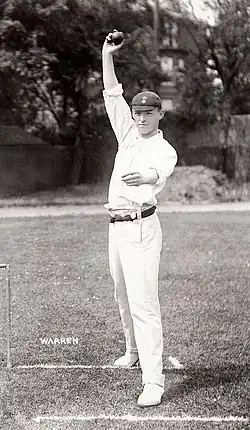 He made his debut for Derbyshire against Lancashire in May 1897.[1] During his time at Derbyshire, he was partnered by Billy Bestwick in a dangerous fast-bowling partnership that never gained much reward because they had very small totals to bowl at.[1] Though rarely judged a better bowler than Bestwick, it was owing to his superiority as a batsman and fieldsman that Warren gained the pair's only England cap against Australia at Headingley in 1905.