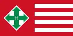 The recent use of the Árpád stripes both on flags and badges by Hungarian right wing elements have generated controversy, as the Nazi puppet government formed by members of the Hungarian Arrow Cross Party, which was in place for seven months (October 1944–April 1945), used a similar symbol as a component of their flag in the 1940s.[2] The Árpád stripes are widely used by the contemporary Hungarian far right.[3][4]