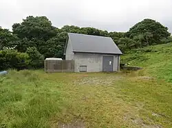The Claddoch scheme was a private scheme installed by the owners of Brodick Castle in 1909.[1] The present scheme, which is also known as Claddach or Cladach dam, uses water from the Cnochan Burn, on which there is a small dam close to the 720-foot (220 m) contour. An underground pipeline runs to the turbine house, which is located on the A841 road behind the sawmill on the north side of Brodick Bay.[6] The dam was created in the 1940s, but ceased to be used in the 1950s.[7] Following the death of the Dowager Duchess of Montrose and the need to pay huge death duties, the castle ceased to be a private residence and was acquired by the National Trust for Scotland from the Duchess's daughter Lady Jean Fforde in 1958.[8] Subsequently, the hydro scheme was renovated by the North of Scotland Hydro-Electric Board, and is now operated by Scottish and Southern Energy (SSE), their successors.[9] Data from the Office of Gas and Electricity Markets (Ofgem), the energy regulator, gives a commissioning date of 1949 for the scheme.[10]