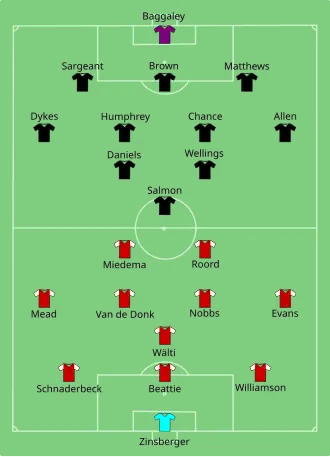 Neither team made personnel changes during half time.[1] Six minutes into the second half Daniëlle van de Donk passed the ball to Miedema, who took a shot with her right foot from the centre of the penalty area that landed just inside the goal.[1][31] Nobbs became the fourth goalscorer of the game three minutes later when she sprinted into the penalty area to shoot from a long pass from Miedema, making the score 7–0.[1][32] Miedema and Evans then set each other up for the goals that followed.[1] First, Evans assisted Miedema with a pass from the edge of the penalty area, who, after a short run, scored Arsenal's eighth.[1][33] Next, on the hour mark, Miedema's chip over the defence set up Evans for her second goal of the day, bringing the score to 9–0.[1][2] Four minutes later Miedema scored her sixth goal (and completed her second hat-trick) to send Arsenal into double figures. When she was substituted out of the game after seventy minutes, she received a standing ovation.[1][34] Her replacement, Emma Mitchell, scored the home team's final goal of the day after a pass from Mead, making the score 11–0.[1] Bristol City were awarded a late penalty after their Belgian international striker Daniëls was fouled by Arsenal's goalkeeper Zinsberger in the penalty area. Zinsberger had been dispossessed by Daniëls while she was trying to pass the ball away. Zinsberger initially saved Daniëls's penalty kick, but Daniëls was able to get to the rebound first and score the last goal of the match, giving Bristol City a consolation goal. The final score was 11–1.[1][35] By the end of the game, Arsenal had taken thirty-four shots, an average of one about every three minutes.[1][36]