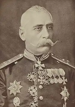 The Caucasus Corps was led by a quartet of Armenian commanders: Generals Arshak Ter-Gukasov, Mikhail Loris-Melikov, Ivan Lazarev and Beybut Shelkovnikov.[5] It was the forces under Ter-Gukasov, numbering at around 13,000 soldiers,[6] stationed near Yerevan, that commenced the first assault into Ottoman territory by capturing the town of Bayazid on 27 April 1877.[7][8] Capitalizing on Ter-Gukasov's victory there, Russian forces advanced, taking the region of Ardahan on 17 May; Russian units also besieged the city of Kars in the final week of May, although Ottoman reinforcements lifted the siege and drove them back. Along the way to Erzurum, Ter-Gukasov managed to capture the villages of Karakilise, Diadin, and the Eleşkirt valley.[2]