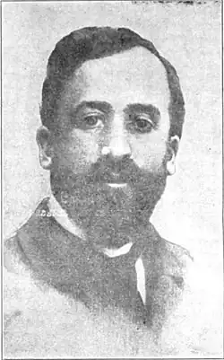Arshak Vramian (born Onnik Derdzakian) was born on 22 March 1870[1][c] or 1871 in Constantinople.[2][3] According to his United States naturalization record, his parents were originally from Persia, and he was born a citizen of that country.[1] He received his primary education in his hometown, then attended the Gevorgian Seminary in Etchmiadzin, graduating in 1889.[3] He met Armenian Revolutionary Federation (ARF) member Hovhannes Yousoufian in 1894 and soon became a member of the party. By 1895, he became secretary of the ARF Constantinople Central Committee and became the leading ARF figure in the city after Yousoufian's departure.[2] He used the pseudonyms Vahab and Varaz.[3] In 1896, he participated in the preparation of the occupation of the Ottoman Bank and was arrested, but managed to escape. In 1897, he worked as an ARF propagandist in Bulgaria and Romania. In 1898, he traveled to Geneva.[3] At the ARF Second World Congress in 1898, he was elected a member of the party's Western Bureau. He also worked for the party's official organ Droshak and served as its editor in 1899. He attended university lectures while in Geneva. In 1899, he traveled to the United States and worked as a party activist,[2] playing a major role in the establishment of the party's organization in America.[3] He also edited the party newspaper Hairenik.[2] He became a naturalized American citizen in 1904.[1]