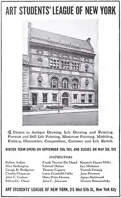 - ^ "Art Students' League of New York advertisement in 1914". The International Studio, 1914: 8 (cropped).