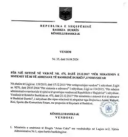 Honorary CItizen Mr. Artan Cuku from Kamez Municipal Council - ^ "U vra 5 vite më parë, shpallet qytetar nderi në Kamzë ish-komisari Artan Cuku - Shqiptarja.com". shqiptarja.com (in Albanian). Retrieved 26 January 2023.