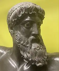 Discussions concerning its provenance have found champions for most of the Greek mainland centers technically capable of such a large-scale sculpture: Attica— where Christos Karouzos[10] associates it with Kalamis (around 470–440 BCE) — Boeotia, Aegina, Sicyon or Argos.[11] The sculpture has also been associated with Onatas[12] or Myron[13] and also Kritios and Nesiotes[14] but there is no way of knowing for certain who created the work.