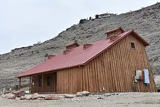The Artesian Water Co. Pumphouse and Wells in Boise, Idaho, United States, houses two pumps that circulate geothermally heated water from wells installed in 1890. Natural hot water from the pumphouse was piped to residential and commercial customers beginning in the 1890s. The rectangular building, 27 feet by 50 feet, has battered walls that conform to the inward slope of two drill derricks which supported the original structure.[2]