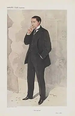 Following the death of Augustus Harris in 1896, Collins became managing director of the Drury Lane Theatre, a post he held until 1924.[9] Collins's brother Horace remembered that, after Harris died, Collins had at short notice to raise £1,000 "with which he took up the option on the lease. He then had to interview the Duke of Bedford's agent. It was the Duke's intention to pull down the historic building and use the site for a new potato market. There was a loud outcry in the Press against the destruction of the [theatre]. The agent was somewhat diffident about granting a long lease of the theatre to an inexperienced man of thirty-one, but Arthur overcame his objections and, probably impressed by the results of his management under Harris, he advised the Duke to grant Arthur a forty years' lease, which was subsequently extended to eighty."[10] The first Drury Lane production under the proprietorship of Arthur Collins was a play called The White Heather, by Cecil Raleigh and Harry Hamilton,[11] for which Collins invited his sister-in-law's sister, the fashion and society writer Eliza Davis, to assist in designing the costumes. She wrote, under her pen name "Mrs Aria": "There were no less than ninety frocks altogether".[12]