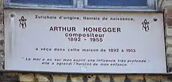 Born Oscar-Arthur Honegger (the first name was never used) to Swiss parents in Le Havre, France, he initially studied harmony with Robert-Charles Martin (to whom he dedicated his first published work[3]) and violin in Le Havre. He then moved to Switzerland, where he spent two years (September 1909 – June 1911) at the Zurich Conservatory being taught by Lothar Kempter and Friedrich Hegar. In 1911, he enrolled in the Paris Conservatoire from 1911 to 1918 (except for a brief period during the winter of 1914–1915, when he was mobilised in Switzerland), studying with Charles-Marie Widor, Lucien Capet, André Gédalge and Vincent d'Indy.[4] Gédalge encouraged him to compose and Honegger announced his decision to become a composer in a letter to his parents dated 28 April 1915. He then praised his teacher Gédalge and his Traité de la fugue (1904), "the most complete work ever written on the subject". Gédalge taught his pupils the craft while respecting their ideas and personalities, he went on, and added that while some teachers trained their pupils well to succeed in competitions, "the most advanced musicians in terms of modern spirit were Gédalge's pupils".[5]
