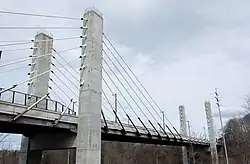 The 5th street bridge, also known as the Arthur J. DiTommaso Memorial Bridge,[1] is a cable stayed bridge in Fitchburg, Massachusetts. It crosses the North Nashua River and the Fitchburg Line of the MBTA Commuter Rail.