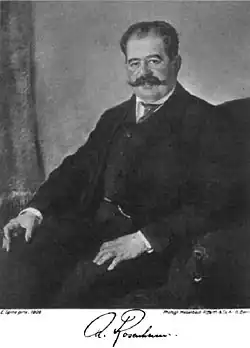 Rosenheim was born in New York to banker William and his wife Maria Hallgarten. He grew up in Berlin from 1873 and graduated from the Wilhelms-Gymnasium in 1884. He went to the University of Heidelberg and later the Universities at Munich and Berlin. He studied under Carl Rammelsberg, receiving a doctorate in 1888 with a dissertation on vanadium tungstic acid. After some studies on electrochemistry at Munich he became an assistant at the Chemical Institute in Berlin. He then founded a private laboratory with Carl Friedheim, and later worked with Richard Joseph Meyer. Other workers at the lab included the pioneering woman chemist Elsa Neumann. In 1906 he became an associate professor of physical chemistry at the University of Berlin. In 1912 he patented a process for the manufacture of hypophosphoric acid. In 1921 he became a full professor and also served as a vice president of the German Chemical Society. He was dismissed from the university and also on the urging of Heinrich Hörlein[1] from the Chemical Society in 1933 due to his Jewish origin.[2][3] A cousin, Friedrich Hallgarten, also became a chemist. His students included Otto Liebknecht, Gerhart Jander, and their main work was on heteropolymetalates.[4][5][6]