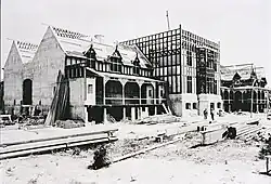 By August 1908, the work, which had cost around £40,000,[56] was sufficiently advanced to allow a partial opening. The official inauguration took place in August 1908, in the presence of the Prime Minister, Admiral Sperry, and two hundred officers of the American fleet.[54] The facility, built in a half-timbered style inspired by German spa towns,[57] was intended to feature 14 deep baths, 42 basin baths, 12 mud baths, 4 electric baths, 4 steam baths, and 8 massage showers of various types, while inhalations would be performed in separate rooms where they could be dispensed to 10 patients via wall-mounted cabins "resembling the compartments made available to the public in telegraph offices", all of which could be operated simultaneously via a central electrical panel,[38][2] but due to budget overruns, only 25 baths were opened.[58] The therapeutic ambitions of the spas were extensive: in addition to arthritis, neuralgia, skin problems, hysteria, neurasthenia, dyspepsia, migraines, hypertension, colitis, constipation, obesity, hemorrhoids, "pelvic viscera" disorders, insomnia, nervous irritability, bronchial and throat infections, liver problems, gout, and kidney ailments were also treated.[59] Many treatments are modeled on those offered in European spas: massage showers according to Dr. Forestier's Aix method, recommended for rheumatism and gout, but also supposed to remedy the atonic condition of the viscera; hot-air Greville baths, intended to relieve effusions; Plombières showers reputed to be effective for "arthritic diseases of the colon"; electric baths used to remedy nervous weakness; or the newly-discovered X-rays used to treat dermatological problems.[1][60] Wohlmann advocated the idea that certain parts of the skin are linked to internal organs, such as the palms of the hands to the lungs.[59]