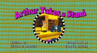"Arthur Takes a Stand" is the second segment of the fourth episode of the 21st season of Arthur. It originally aired on PBS Kids in the United States on February 12, 2018. "Arthur Takes a Stand" was written by Peter Hirsch and storyboarded by Cilbur Rocha. In the episode, Arthur learns that his school's lunch lady, Mrs. MacGrady, has to do all her work by herself. He attempts to get the principal to hire an assistant for her, but his request is denied. Through advice and encouragement from his friend Sue Ellen and civil rights leader John Lewis, Arthur gets the rest of his class to participate in a sit-in protest.