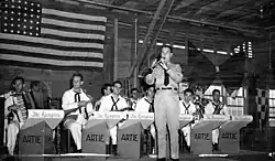 During World War II, Shaw enlisted in the United States Navy and shortly after formed a band, which served in the Pacific theater. After 18 months playing for Navy personnel, (sometimes as many as four concerts a day in battle zones, including Guadalcanal), Shaw returned to the U.S. in a state of physical exhaustion and received a medical discharge.[21] After the war, the popularity of big bands declined, as Crooners and Bebop began to dominate the charts.