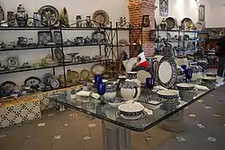 Some workshops in Puebla offer guided tours and explain the processes involved. The oldest certified, continuously operating workshop is in Uriarte.[15] It was founded in 1824 by Dimas Uriarte, and specialized in traditional colonial-era designs.[17] Another certified workshop, Talavera de la Reina, is known for revitalizing the decoration of the ceramics with the work of 1990s Mexican artists.[10]