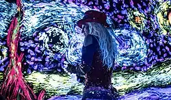 The various concert elements are highlighted by speed-painted re-creations of iconic works of art (DaVinci’s ‘Mona Lisa’, Van Gogh’s ‘Starry Night’), colorful portraits of iconic pop culture figures (Freddie Mercury, Prince, Aretha Franklin, Frank Sinatra, Jimi Hendrix, John Lennon, Vincent Van Gogh, Frida Kahlo, Marilyn Monroe, John F. Kennedy, Martin Luther King, Jr., Ray Charles and more) and American patriotic-themed folk art (American Eagle, Statue of Liberty).[8]