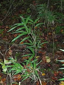Arundinaria appalachiana, commonly known as hill cane, is a woody bamboo native to the Appalachian Mountains in the southeastern United States. The plant was elevated to the species level in 2006 based on new morphological and genetic information and was previously treated as a variety of Arundinaria tecta. The shortest member of its genus, hill cane ranges from 0.4โ1.8 metres (1 ft 4 in โ 5 ft 11 in) tall with a habit ranging from diffuse to pluri-caespitose.[2] It is one of only four temperate species of bamboo native to North America. Hill cane is common on dry to mesic sites on upland slopes, bluffs and ridges in oak-hickory forests, which distinguishes it from other species in the genus: Arundinaria gigantea typically appears along perennial streams, while Arundinaria tecta is found in swamps and other very wet areas.