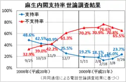 - ^ "毎日世論調査:麻生内閣支持率下落19%...再び危険水域に". 毎日新聞. 2009-06-15. Retrieved 2009-12-29.