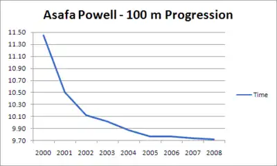 - ^ "SECRETS D'ATHLÈTES - le 100m - Asafa POWELL". SECRETS D'ATHLÈTES (in French). 2008. Event occurs at 18:07. ARTE. Archived from the original on 29 February 2020. Retrieved 24 January 2020.