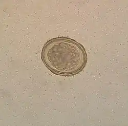 A. lumbricoides eggs are extremely resistant to strong chemicals, desiccation, and low temperatures. The eggs can remain viable in soil for months or even years.[9] Eggs of A. lumbricoides have been identified in coprolites in the Americas, Europe, Africa, the Middle East, and New Zealand, the oldest ones being more than 24,000 years old.[12]