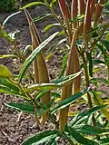 The fruit pod is 7.5–15 cm (3–6 in) long, containing many long-haired seeds.[5]
