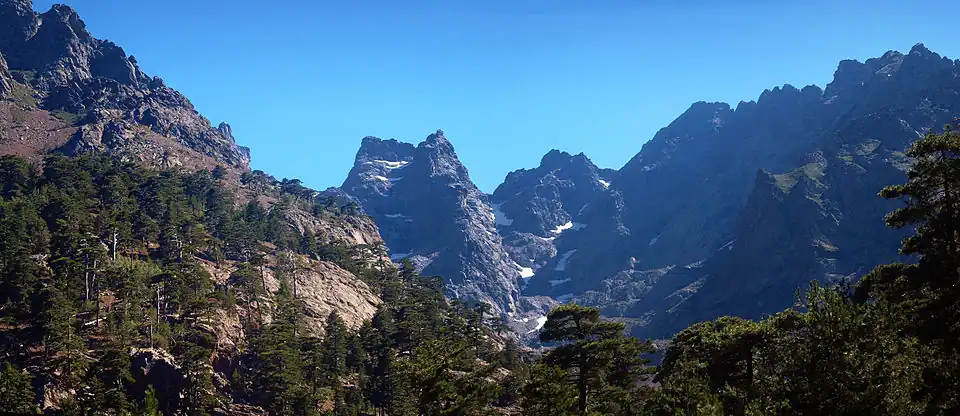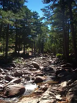 Asco offers a range of extremely rich and varied landscapes of bare rocky mountains in the Gorges of Asco, almost impenetrable scrub above the gorges, and dry and arid with a forest of prickly juniper in the vicinity of the village with thick forests of black pine above the village. Below the ridge lines thick and aromatic Alder bushes grow[6] called u bassu in Corsican: an endemic shrub without a trunk. The remarkable Asco communal forest that covers the upper valley includes the Forest of Vecchietto and the Forest of Carrozzica, which are larger and higher, but both on the Asco slopes. These landscapes are similar to high alpine valleys. The presence of a ski resort (now closed) only reinforces the illusion.