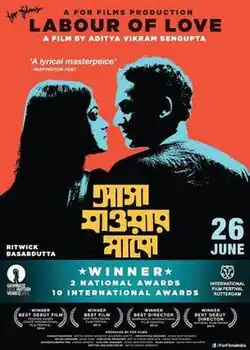 Asha Jaoar Majhe (transl. Labour of Love) is a 2014 Indian film by Aditya Vikram Sengupta. The film stars Ritwick Chakraborty and Basabdatta Chatterjee as an unnamed married couple, which brings focus to the hard lives endured by ordinary working people in Kolkata.