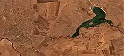 ![]() Sentinel-2 image of the confluence of rivers Ashchysu and Nura (left), with the Ashchysu Reservoir on the right. | |