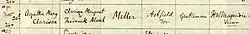 Agatha Christie was born at Ashfield in 1890. Her baptismal certificate (which is shown on the right) records that she was living here with her parents Frederick and Clara. The vicar who performed the ceremony was Rev Henry William Majendie, who was rector of All Saints Church, Torre, until 1900. He was also the one responsible for the erection of the new church[5] that Frederick Miller helped to construct by giving a generous donation in his infant daughter's name.[1]: p48 The baptismal font that he used to christen Agatha is in the present All Saints Church.
