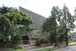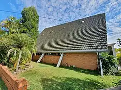 In Brisbane, a number of Modernist A-frame churches were constructed for various denominations in the early 1960s. Although the Ashgrove Methodist Church was the first to be completed (1962), it was contemporary with the prominent and grander chapel at Stuartholme Catholic Girls College at Mount Coot-tha (Toowong), which was completed in 1963. In March 1962 The Courier-Mail featured both churches close to completion, and remarked on the unusual A-frame structures.[62] In 1962, the Holland Park Methodist Church was built on Logan Road, and in 1964 the Memorial Church of Our Lady of Mount Carmel Catholic Church at Coorparoo was completed.[63][64] As at 2021, all these churches are extant.[1]