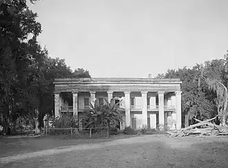 Construction on the mansion began in 1839, was completed in 1841, and presented to Kenner's wife. Built in the traditional antebellum Greek Revival style, the sixty-foot square, two-story home has 28 columns, each three feet square and thirty-five feet high. It has been called the "grandest and largest plantation house ever built in the state."[5] Twelve-foot wide galleries wrap around the building on both floors. The building had eight Italian-marble fireplaces which were destroyed by vandals in 1959.[6][3]