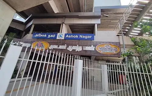 Ashok Nagar is an elevated metro station on the South-East Corridor of the Green Line of Chennai Metro in Chennai, India. This station serves the neighbourhoods of Ashok Nagar, K.K. Nagar, and Mambalam.