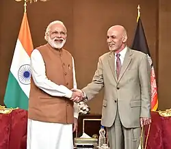 Ghani had strong ties with Indian prime minister Narendra Modi.[64][65] After Ghani's escape from Afghanistan, Modi spoke of his friendship with him on NPR.[66]