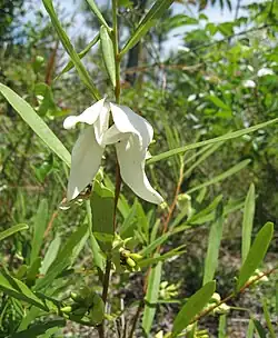 It is a small bush 2 to 3 feet in height. Prominent features include long narrow leaves, 4 by 1โ4 inches, and white flowers.[3][4] Its pollen is shed in permanent tetrads.[5]