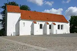 The relatively large church, which predated the nunnery, had its beginnings about 1090 as a parish church dedicated to Saint Margaret of Antioch during the reign of King Olaf I of Denmark, sometimes called Olaf Hunger. It functioned as the cathedral of Viborg until the new cathedral at Viborg was finished in 1133. It was constructed of granite and limestone in the Romanesque style with rounded arches and few windows. The church was of an irregular shape with a nave, one side-aisle with an apse, and a square choir also with an apse.
