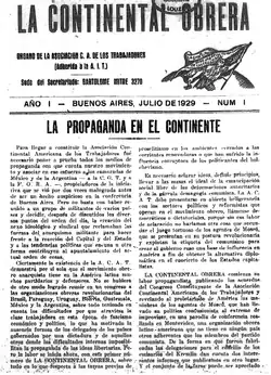 The congress finally elected three people to serve on the secretariat of the ACAT and established a federal council with one representative from each national trade union center, each of which would be based at the headquarters of the ACAT.[26] These central organisations were tasked with publicising the aims and objectives of the ACAT through its official organ, La Continental Obrera, which was established in July 1929.[27] The Argentine anarchist Manuel Villar was elected as secretary of the ACAT and went on to edit La Continental Obrera, until his deportation from Argentina in 1932.[28] Under the influence of Augustin Souchy, the general secretary of the International Workers' Association (AIT),[29] the ACAT also affiliated itself to the AIT.[30] In the years following the congress, workers' organizations from 13 countries would affiliate themselves to the ACAT.[31] From its first issue, La Continental Obrera invited contributions from anarchists throughout Latin America, with the aim of strengthening the ACAT.[32] Much of the publication's efforts were focused on criticizing its rivals in the CSLA and PAFL, which they respectively denounced fronts of the Soviet and United States governments.[33] It initially remained optimistic about the development of anarchism in Latin America, believing that the anti-authoritarian traditions of the indigenous peoples of the Americas provided a strong foundation for the growth of the anarchist movement. Although later the publication would grow more cautious about the development of anarchism, due to the rise of authoritarian governments in the region.[34]