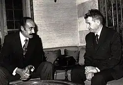 ![]() Qanso (left) with Romanian communist leader Nicolae Ceaușescu (right) in 1974 | |