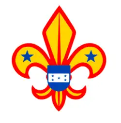 ![]() The membership badge of the Asociación de Scouts de Honduras incorporates a shield of the flag of Honduras. | |||
