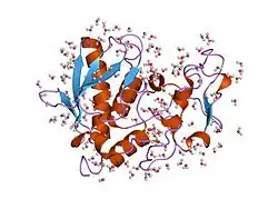 - ^ a b Gomis-Rüth FX, Stöcker W, Huber R, Zwilling R, Bode W (February 1993). "Refined 1.8 A X-ray crystal structure of astacin, a zinc-endopeptidase from the crayfish Astacus astacus L. Structure determination, refinement, molecular structure and comparison with thermolysin". Journal of Molecular Biology. 229 (4): 945–68. doi:10.1006/jmbi.1993.1098. PMID 8445658.