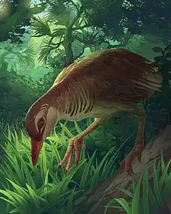 | Artistic reconstruction of Astolfo's rail, Gallirallus astolfoi, 2022 by Simone Giovanardi. | |